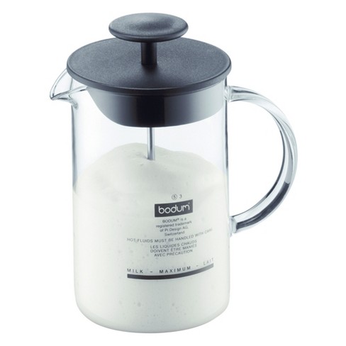 Crafted from brushed stainless steel and heat resistant borosilicate glass the 16 ounce milk frother also features an easy pour spout to help with.
